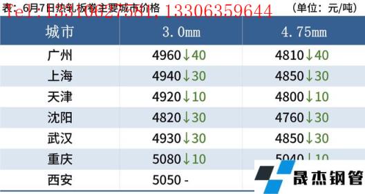 熱軋板卷:6月7日,全國24個主要城市4.75mm熱軋板卷均價4911元/噸,較上個交易日下跌11元/噸。目前全國部分無縫厚壁鋼管廠家開始有檢修計劃,廠庫或將繼續向社庫轉移,市場整體庫存壓力有所減輕,對價格有一定挺價作用。同時在國家政策性利好不斷刺激的情況下,商家多看好后市,預計未來熱軋板卷市場或將以震蕩趨強運行為主。