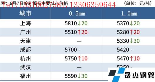 冷軋板卷:6月7日,全國24個主要城市1.0mm冷卷均價5442元/噸,較上個交易日下跌5元/噸。隨著昨日黑色系期貨夜盤偏弱運行,今日早間現貨市場報價以穩為主,個別市場小幅探漲,午后期貨盤面震蕩下行,商家為促成交,價格稍有暗降,以降價出貨為主,今日整體成交表現一般。心態方面,據悉,上海現已解封,資源逐漸可流通至周邊市場,部分商家反饋市場競爭壓力較大,加上進入厚壁無縫鋼管需求淡季,市場情緒并不樂觀,心態謹慎偏悲觀。綜合來看,故預計8日國內冷軋板卷價格或將震蕩運行。