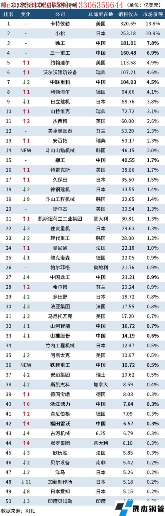 免責(zé)聲明:本網(wǎng)站(山東聊城晟杰無縫鋼管廠www.uldzz.cn)刊載的“2022全球工程機(jī)械50強(qiáng)榜單出爐,企業(yè)銷售額增超20%”等均源于網(wǎng)絡(luò),版權(quán)歸原作者所有,且僅代表原作者觀點(diǎn),本文所載信息僅供參考。轉(zhuǎn)載僅為學(xué)習(xí)與交流之目的,如無意中侵犯您的合法權(quán)益,請(qǐng)及時(shí)聯(lián)系刪除。本網(wǎng)站刊登此篇文章并不意味著本站贊同其觀點(diǎn)或證實(shí)其內(nèi)容的真實(shí)性,我們不對(duì)其科學(xué)性、嚴(yán)肅性等作任何形式的保證。如果侵犯了您的版權(quán),請(qǐng)盡快聯(lián)系我們予以撤銷,謝謝合作!