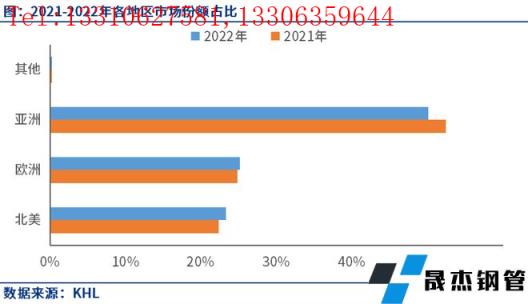 從全球各地區(qū)來看,2022年北美和歐洲市場份額占比均有不同程度提升。亞洲市場份額下降,從52.4%降至50.1%,下降2.3個(gè)百分點(diǎn)。