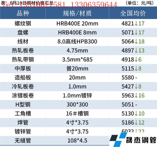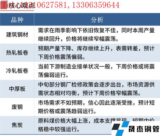 建筑厚壁無縫鋼管:6月10日,全國31個主要城市20mm三級抗震螺紋鋼均價4821元/噸,較上個交易日下跌17元/噸。短期來看,目前市場需求在雨季影響下依舊恢復不佳,同時本周產量繼續回升,高爐產能維持,供需仍然呈現雙弱格局。因此在下游需求難以回暖的狀態下,預計下周國內建筑厚壁無縫鋼管價格或將繼續窄幅震蕩為主。