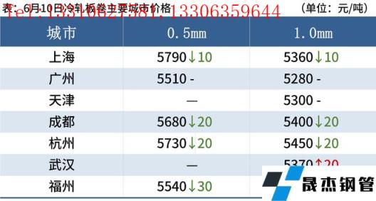 冷軋板卷:6月10日,全國24個主要城市1.0mm冷卷均價5427元/噸,較上個交易日下跌8元/噸。大部分市場商家信心不足心態偏悲觀仍然選擇調低報價以出貨回籠資金的操作為主。據商家反饋,當前下游制造業接單狀況一般,觀望心態較重,按需采購為主,今日成交整體一般。綜合來看,故預計下周國內冷軋板卷價格或將震蕩偏弱運行。