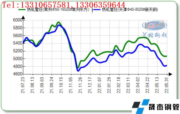 圖2 2021-2022年南北方樣本無(wú)縫無(wú)縫鋼管廠家20#熱軋管坯價(jià)格走勢(shì)圖