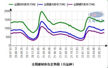 據(jù)云商平臺(tái)監(jiān)測數(shù)據(jù)顯示:2022年6月24日,全國厚壁鋼管社會(huì)庫存指數(shù)為154.9點(diǎn),比上月上升2.50%,比去年同期上升10.92%;其中建材社會(huì)庫存指數(shù)為221.1點(diǎn),比上月上升1.43%,比去年同期上升16.58%;螺紋鋼社會(huì)庫存量為734.59萬噸,比上月上升1.83%,比去年同期上升15.38%;伴隨著無縫鋼管廠家部分檢修減產(chǎn),及需求的緩慢釋放,庫存上升勢頭開始有所放緩,臨近月末開始由升轉(zhuǎn)降。