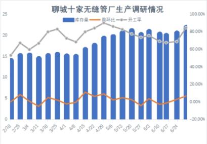 圖3 2022年上半年全國(guó)無(wú)縫管總庫(kù)存及開工率