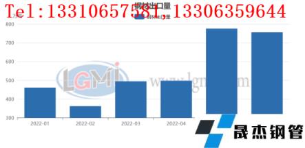 圖6 2022年上半年我國(guó)厚壁鋼管出口量走勢(shì)圖