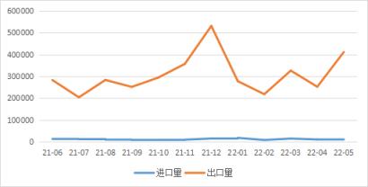 圖7 2022年上半年我國(guó)無(wú)縫管出口量、進(jìn)口量走勢(shì)圖