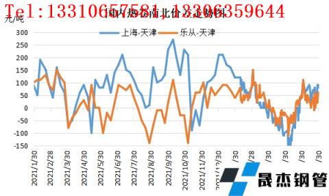 另外,受需求低迷拖累熱卷市場南北價格難以拉開,資源多集中在當(dāng)?shù)貐^(qū)域消化,難以實現(xiàn)南北流通,也在一定程度上加劇了市場購銷難度,側(cè)面反饋了終端需求的低迷。特別是3月下旬到5月中旬的一段時間,熱卷北方價格持續(xù)高于華南以及華東成交。據(jù)云商平臺監(jiān)測數(shù)據(jù)顯示,上半年南北區(qū)域價差持續(xù)低位,多數(shù)時間不足100元區(qū)間。截止到6月底,上海-天津熱卷區(qū)域價差為80元,樂從-天津價差為60元。而天津到華東海運費120-130元,天津到華南運費為180-190元。