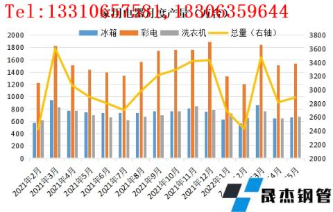 家電版塊產(chǎn)量表現(xiàn)也不甚樂觀。據(jù)國家統(tǒng)計局?jǐn)?shù)據(jù)顯示,1-5月全國冰箱累計產(chǎn)量3401萬臺,同比下降8.1%;洗衣機(jī)累計產(chǎn)量3471.7萬臺,同比下降4.1%;彩電累計產(chǎn)量7441萬臺,同比增長4.5%。