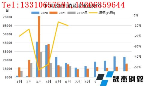 挖掘機(jī)銷量同比下滑明顯。據(jù)中國工程機(jī)械工業(yè)協(xié)會行業(yè)數(shù)據(jù)顯示,2022年上半年共銷售各類挖掘機(jī)143094臺,同比下降36.1%。其中,國內(nèi)市場銷量91124臺,同比下降52.9%;出口銷量51970臺,同比增長72.2%。分月度數(shù)據(jù)來看,最高值出現(xiàn)在3月份,挖掘機(jī)銷量為37085臺,同比仍存53.1%跌幅,其中國內(nèi)銷量26556臺,同比減少63.6%;出口10529臺,同比增長73.5%。最低點出現(xiàn)在1月份,銷量為15607臺,同比下降20.4%。可以看到的是,2022年6月份挖掘機(jī)銷量同比降幅大幅收窄,主要得益于封閉管控對物流運輸造成的影響減弱,以及穩(wěn)增長政策落地顯效,挖掘機(jī)國內(nèi)銷量有所改善。