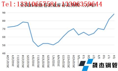 無縫鋼管廠家?guī)齑娣矫嫣幱谙鄬Ω呶唬刂沟?月24日網(wǎng)統(tǒng)計國內(nèi)35家熱卷企業(yè)無縫鋼管廠家熱卷廠庫為88.21萬噸,創(chuàng)上半年以來新高。主要原因在于進(jìn)入6月份之后受成材跌勢加劇利空無縫鋼管廠家虧損情況增多,市場不斷傳出無縫鋼管廠家即將減產(chǎn)消息,但減產(chǎn)后期被證偽,熱卷產(chǎn)量依然處于高位水平;而需求端雖華東區(qū)域疫情解封,但需求依然難有實質(zhì)性利好改觀的情況,無縫鋼管廠家?guī)齑娉尸F(xiàn)持續(xù)累庫狀態(tài)。